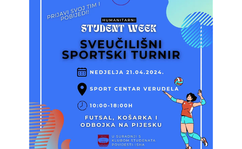 Nedjelja, 21. travnja 2024., bila je rezervirana za sportove, a to je značilo i početak samog Student Weeka. Studenti te djelatnici Sveučilišta natjecali su se u futsalu, košarci 3na3 te mix parovima u odbojci na pijesku. Sunčano vrijeme bilo je pravi mamac za posjetiti terene sportskog kompleksa na Verudelli o čemu svjedoči i velik broj publike na sportskim borilištima.
