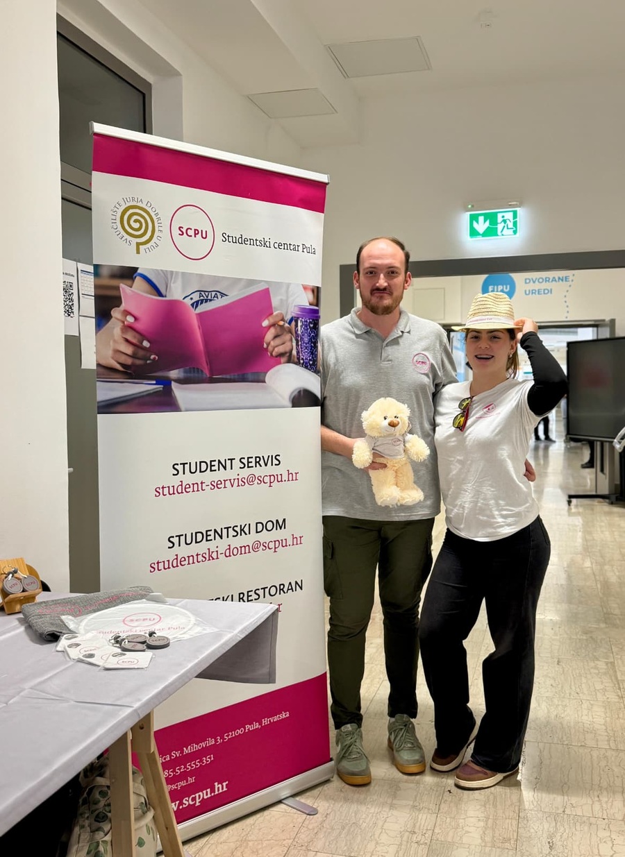 Studentski centar Pula je predstavio svoje djelatnosti u sklopu ovogodišnje Smotre Sveučilišta Jurja Dobrile u Puli. Uz veliki broj promotivnih materijala, maturanti su imali priliku detaljno se upoznati s različitim uslugama koje nudimo, uključujući studentski smještaj, prehranu te način i uvjete zapošljavanja putem student servisa.
