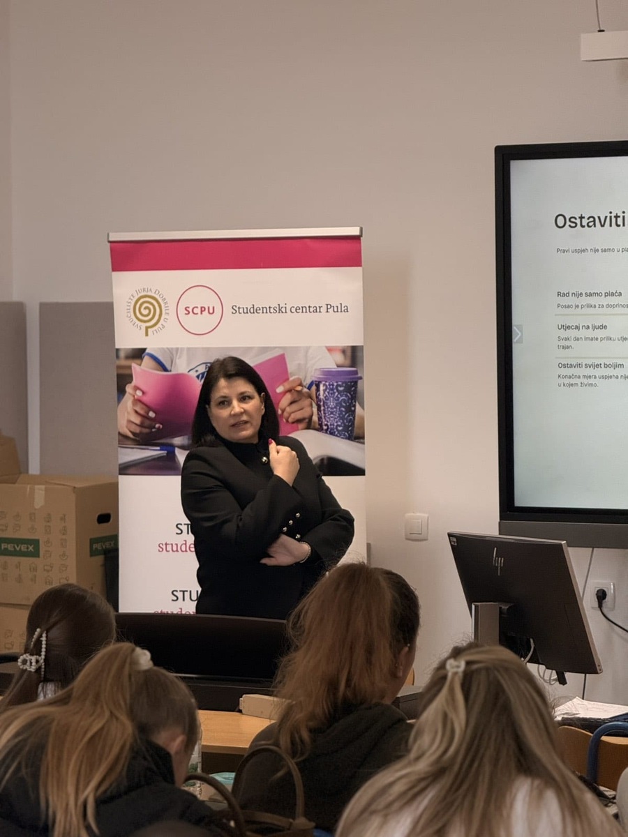 U organizaciji Studentskog centra Pula, uz suradnju HGK – Županijske komore Pula i Odsjeka za razvoj karijera i alumni UNIPU-a održano je inspirativno predavanje koje je okupilo velik broj studenata čija je pažnja tijekom cijelog susreta bila na zavidnoj razini.