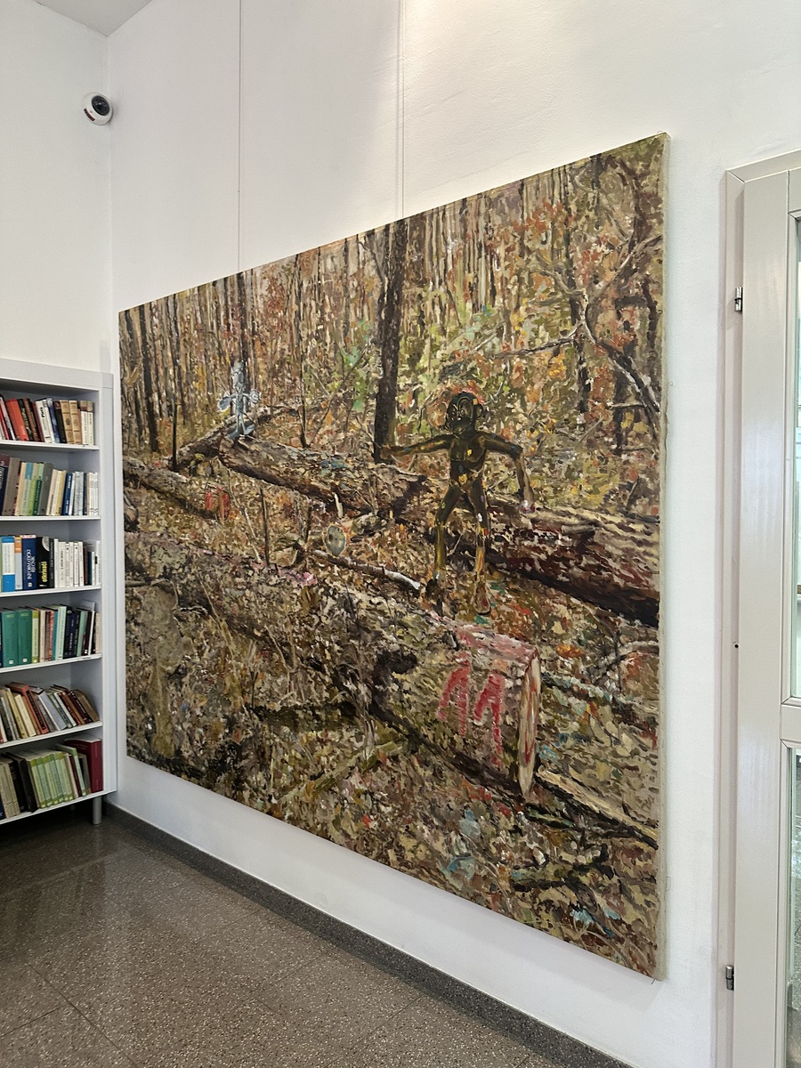 Izložba „Pejzaži zaborava“ donosi seriju radova u kojima Bojan Šumonja istražuje kompleksne veze između čovjeka, okoliša i suvremenog društva. Kroz bogatstvo simbolike, radovi prikazuju mračne, apokaliptične krajolike koji odražavaju stanje svijesti današnjeg društva. Korištenjem ikona iz pop-kulture i simbola potrošačkog svijeta, umjetnik stvara svjetove u kojima se miješaju prirodno i zagađeno, živo i mrtvo, nudeći publici prostor za refleksiju o vlastitim svakodnevnim realnostima. Šumonja kroz ove slike propituje fragilnost suvremenog postojanja, sugerirajući da ovi „pejzaži“ nisu tek produkt mašte, već realnosti koje smo već zaboravili prepoznati.