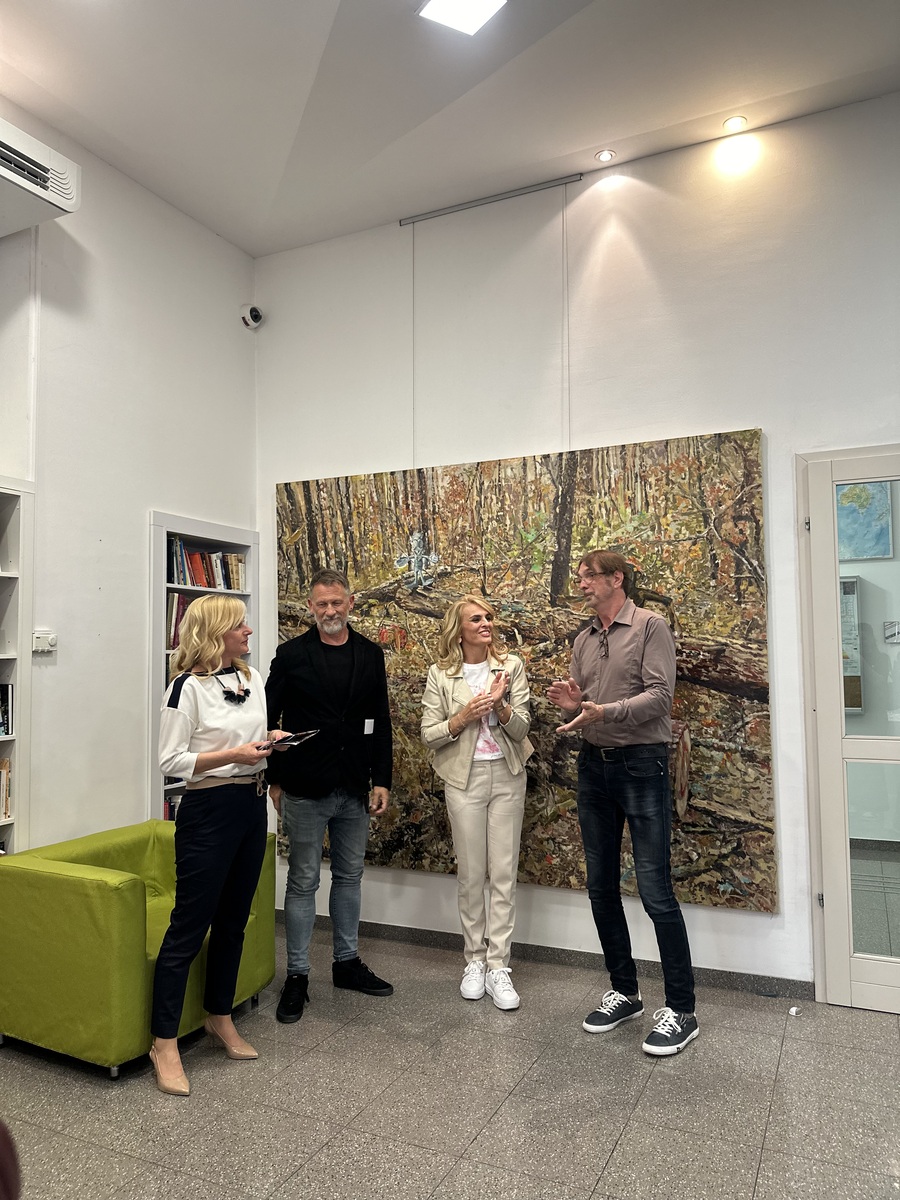 Jučer je u Galeriji Studentski održano otvorenje izložbe „Pejzaži zaborava“ akademskog slikara Bojana Šumonje, koja je privukla veliki broj posjetitelja. Izložba je službeno otvorena u četvrtak, 16. travnja, u 19 sati. Prije samog otvorenja, u 18 sati, održan je „Razgovor s autorom“, gdje je Bojan Šumonja podijelio svoja osobna iskustva, inspiraciju te put kroz umjetnost. Otkrio je detalje svojih početaka, govorio o izazovima s kojima se susretao te davao vrijedne savjete mladim umjetnicima. U opuštenoj atmosferi razgovora, umjetnik je također otkrio kako su njegove životne okolnosti oblikovale njegov pristup stvaranju, te kako se kreativni proces razvijao tijekom godina.